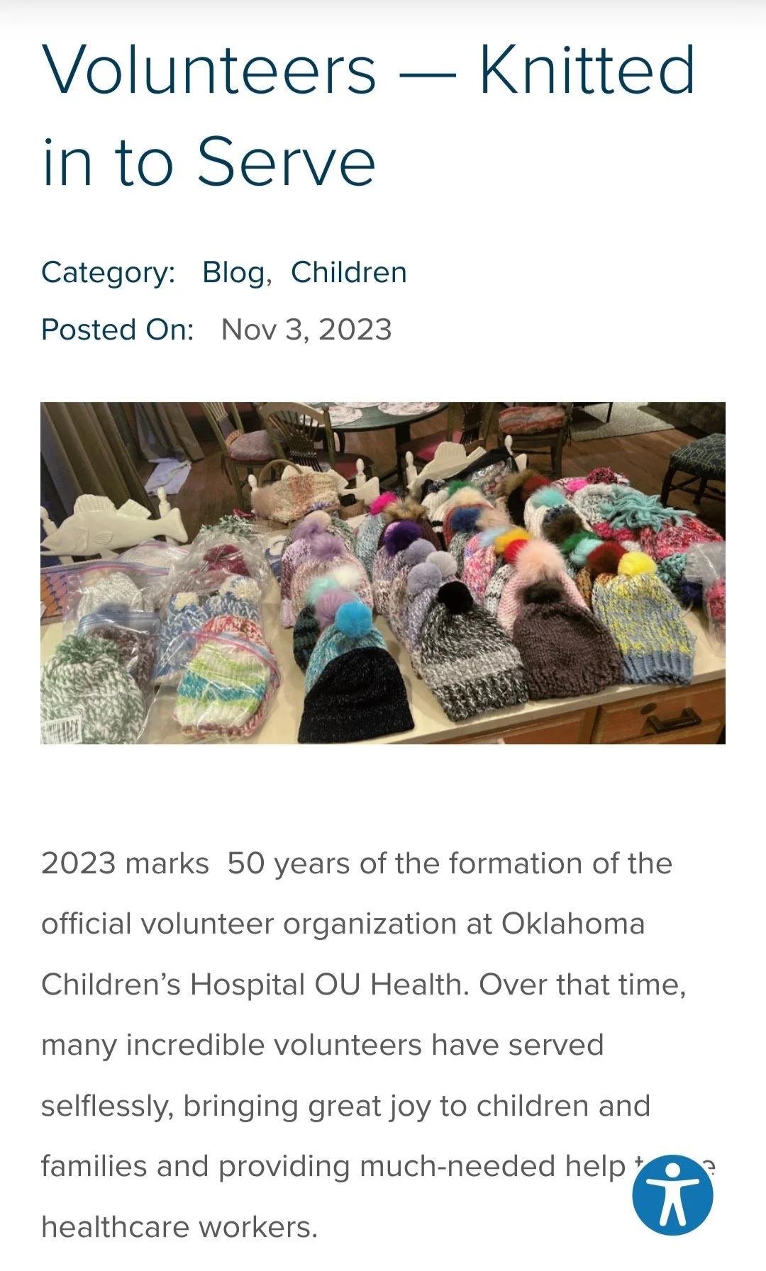 2023 marks 50 years of the formation of the official volunteer organization at Oklahoma Children’s Hospital OU Health. Over that time, many incredible volunteers have served selflessly, bringing great joy to children and families and providing much-needed help to the healthcare workers.